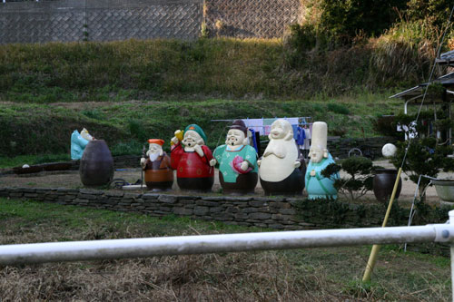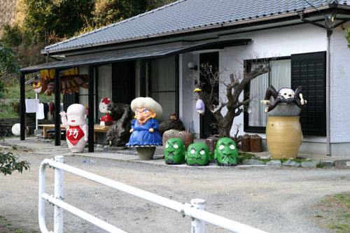 製作されている方のお宅なんですが、お庭がこんな状態です。しかも、随時バージョンアップしています。今、アンパンマンシリーズは、町内各地に出張中です。