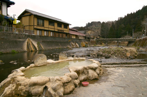 延岡からちょうど2時間。まずは腹ごしらえということで、「長湯屋台村」というところで「西洋軒」という洋食屋(といってもちっさいレトロなお店です)で、カツカレーを食べました。カツがしっかりサクサクで美味しかったです。昼食後、目の前の川の中の温泉「ガニ湯」を見物。さすがに、入りはしませんでしたが、「本当の露天風呂」という感じです。